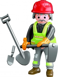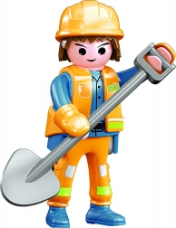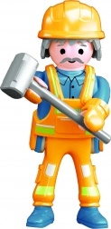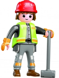 Figura operaio per costruzioni di dimensioni 7 cm, ideale per tutti i piccoli costruttori. Il pacchetto include varianti e accessori diversi, come strumenti e istruzioni per l'assemblaggio.