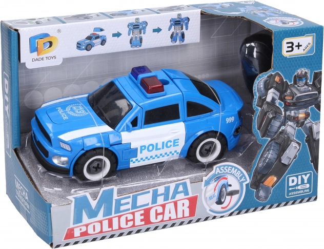 Costruisci un autorobot della polizia con ruote libere e cacciavite. Ideale per giochi creativi.