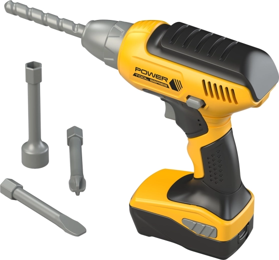 Set trapano. Dimensioni 17,5x6x21,5 cm. Effetti luminosi. 3 batterie AAA non incluse. Interruttore ON/OFF sul trapano. Inclusi: 1 punta, 2 cacciaviti, 1 chiave.