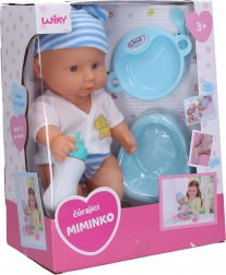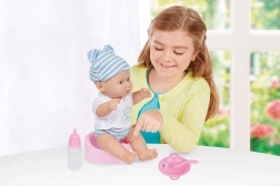 Bambolotto realistico per giocare a fare i genitori, lungo 30 cm, che dopo aver bevuto dal biberon fa la pipì e riproduce fino a 10 suoni diversi. Inclusi vasino, biberon, piattino e cucchiaino. Le batterie 3× AG13 sono incluse nella confezione.