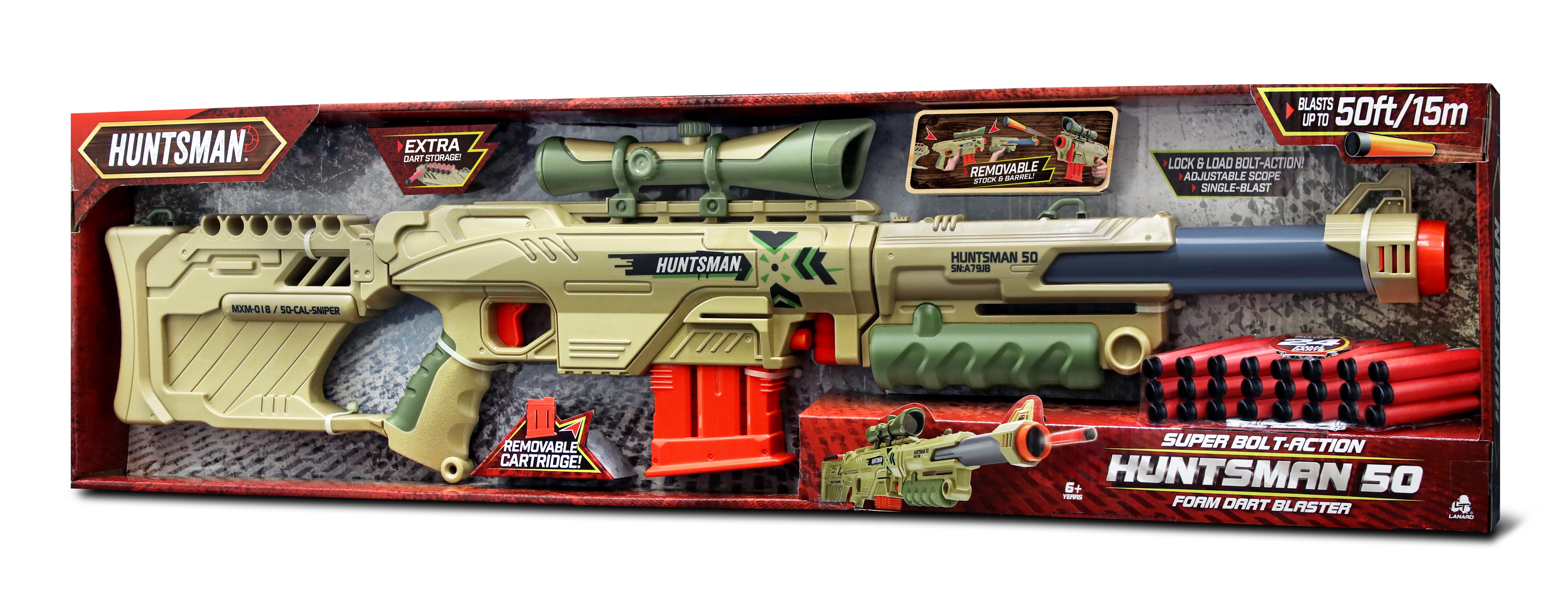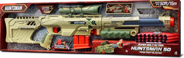 Huntsman Sniper Blaster è un giocattolo versatile per piccoli tiratori e appassionati collezionisti. Grazie alla struttura modulare puoi passare in poco tempo da un lungo fucile da cecchino a un blaster compatto a mano. La maneggevolezza leggera, i dardi in foam sicuri e il design accattivante garantiscono ore di gioco sicuro e creativo.