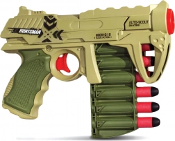 La pistola Huntsman X6 offre un design compatto ideale per giochi d'azione in spazi limitati. È progettata per l'uso con proiettili in schiuma, garantendo un gioco sicuro e divertente per bambini e adulti.