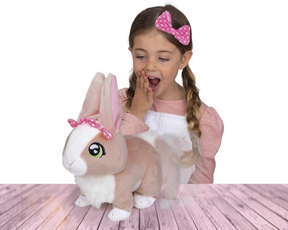 Scopri Tusia nel suo nuovo look! Questo coniglio interattivo è il giocattolo ideale per una bambina. Tusia, la coniglietta che cammina, non solo squittisce quando viene accarezzata e muove allegramente le orecchie, ma emette anche suoni amichevoli che faranno sicuramente sorridere il tuo bambino.