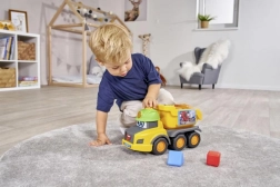 Il camioncino giallo Volvo con design allegro e blocchi colorati per lo smista forme è ideale per lo sviluppo delle abilità motorie.