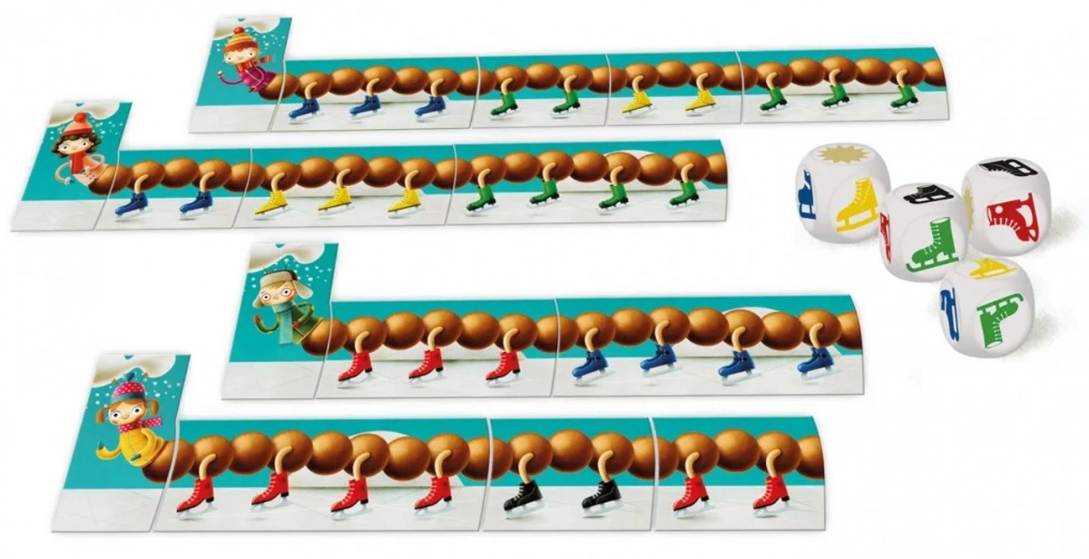 L’obiettivo del giocatore è lanciare il dado tre volte e scegliere i pattini per la propria centipedina! Deve decidere quante paia di pattini e di che colore acquistare. Vince il giocatore la cui centipedina è la più lunga, cioè quella con il maggior numero di pattini.