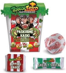 Scopri i personaggi più ripugnanti e bizzarri dagli abissi della friggitrice fast food. Ogni confezione di Terror Fried nasconde 2 orrende figurine e 3 disgustanti miscele per frizzare, schiacciare e divertirsi con il viscido. Ti aspettano più strati di sorprese e una doppia dose di divertimento spaventosamente schifoso: non sai mai quali “prelibatezze” servirà la cucina fast food!
