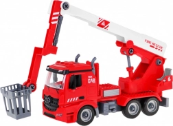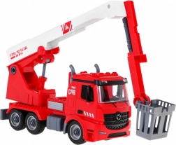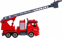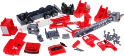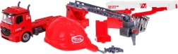Il set include auto dei pompieri 2in1, che i bambini possono costruire da soli con gli strumenti e i pezzi forniti. L'auto è dotata di piattaforma intercambiabile, estensibile e rotante con cesto o idrante a pistola ad acqua che funziona davvero. Questo veicolo è alimentato da 3 batterie tipo LR44, incluse nel set. Emette autentici effetti sonori e luminosi, come suono della sirena, clacson o accensione del motore. Fa parte del set anche l'elmetto, grazie al quale i bambini possono sentirsi veri pompieri.