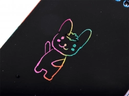 Taccuino creativo arcobaleno A6 con pagine nere sotto le quali si nasconde uno sfondo arcobaleno vivace. Con il bastoncino di legno per disegnare i bambini creano facilmente immagini, motivi e messaggi. Ideale in viaggio, a scuola e a casa per lo sviluppo della fantasia e della motricità fine.