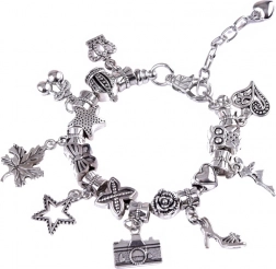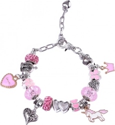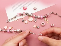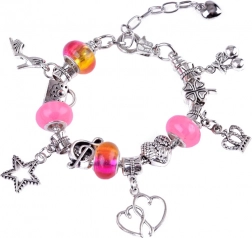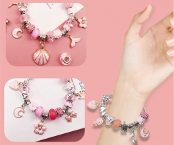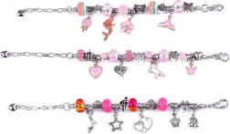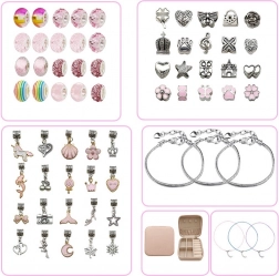 Il set include tutto il necessario per creare bellissimi bracciali e collane: varie perline, ciondoli e fili.
