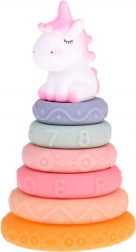 Questo originale giocattolo, Unicorno con anelli colorati, è ideale per lo sviluppo sensoriale dei bambini. Gli anelli sono realizzati in gomma morbida e sicura, ognuno con una texture unica.