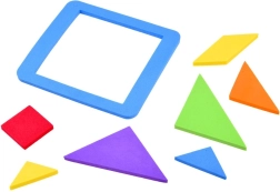 Questo classico tangram in una moderna versione in schiuma offre ore di divertimento intelligente. Con otto pezzi, incluso il telaio, puoi comporre decine di sagome e immagini – seguendo i modelli oppure la tua fantasia. Il materiale morbido è piacevole al tatto e sicuro per i bambini.
