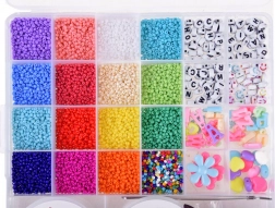 Questo set fai-da-te universale include una vasta gamma di perline colorate e accessori in un organizer trasparente con scomparti. I bambini possono progettare e assemblare gioielli originali per sé e per i propri cari – dai braccialetti con lettere alle collane divertenti con cuoricini e fiorellini. L’organizer aiuta a mantenere tutto in ordine, rendendo il lavoro pulito e divertente.