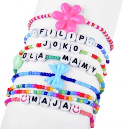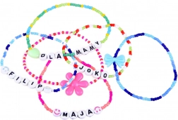 Crea braccialetti e collane con nomi, iniziali o messaggi grazie alle perline con lettere e agli accessori colorati.