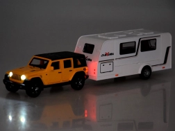 Fuoristrada con caravan con luci e suoni 1:32 – giallo