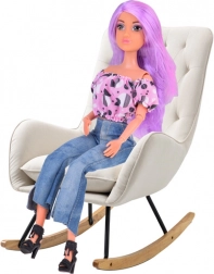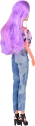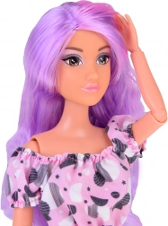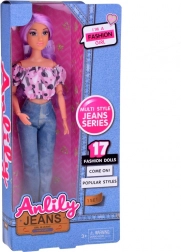 La stilosa bambola Anlily farà felice ogni piccola amante della moda. Ha lunghi capelli pastello viola-rosa, grandi occhi marroni con trucco delicato ed è vestita con un top rosa fantasia, jeans classici e décolleté nere con tacco. Le arti snodabili consentono pose facili e gioco creativo. L'altezza della bambola è di circa 32 cm.