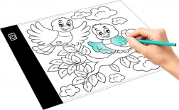 Come funziona: Basta posizionare il disegno che vuoi ricalcare sulla tavoletta e appoggiarvi sopra un foglio pulito. Quindi accendi l’illuminazione desiderata e puoi iniziare a disegnare.
