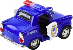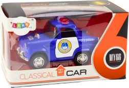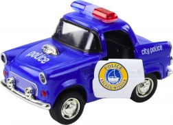 La classica auto della polizia in elegante colore blu è una perfetta replica delle vere auto della polizia, che attrae sia i bambini che gli adulti. Dispone di trazione a frizione, che una volta tirata indietro accelera in avanti, consentendo la simulazione di inseguimenti o pattugliamenti reali della polizia.
