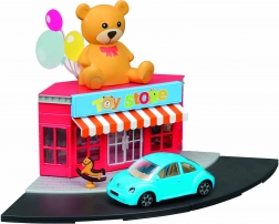 - Edificio del negozio di giocattoli in plastica, modello d'auto in metallo 1:43, elementi stradali e pedonali, accessori