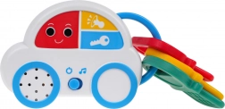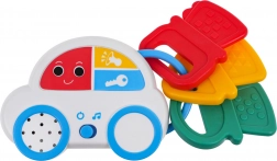 La macchinina interattiva con chiavi offre ai bambini un gioco divertente grazie ai suoi effetti sonori, come l’avviamento del motore o il clacson, e presenta 18 melodie. Grazie alle diverse funzioni, la macchinina può servire anche come massaggiagengive, particolarmente utile durante la crescita dei dentini.