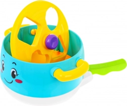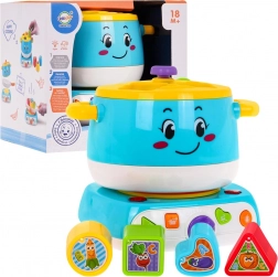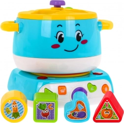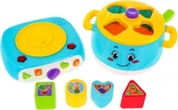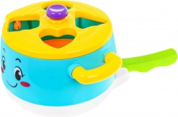 Nella confezione è inclusa una pentola che funge da gioco di forme, offrendo al bambino una sfida e la gioia della riuscita. Il giocattolo è alimentato da due batterie AA (non incluse) che garantiscono un divertimento prolungato.