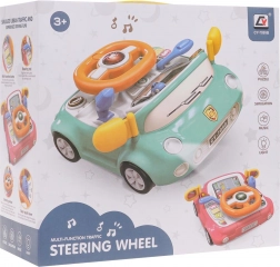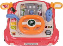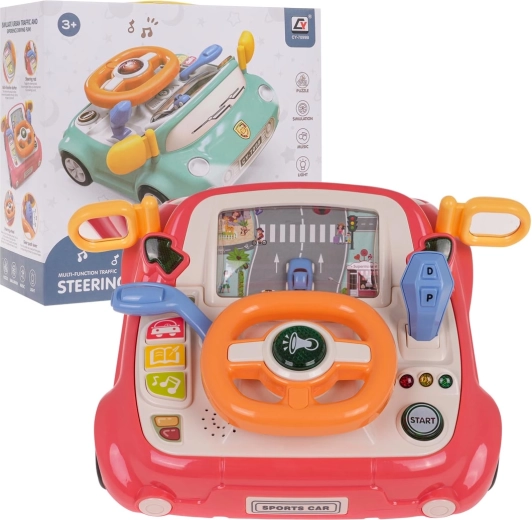 Divertente giocattolo interattivo a forma di automobilina per bambini dai 3 anni. Offre effetti luminosi e sonori, volante girevole con clacson retroilluminato, leva del cambio, indicatori di direzione e uno schermo con strada e automobilina in movimento. Struttura robusta in plastica di qualità, senza spigoli vivi, con quattro ventose per la stabilità e apprendimento delle regole del traffico attraverso il gioco.