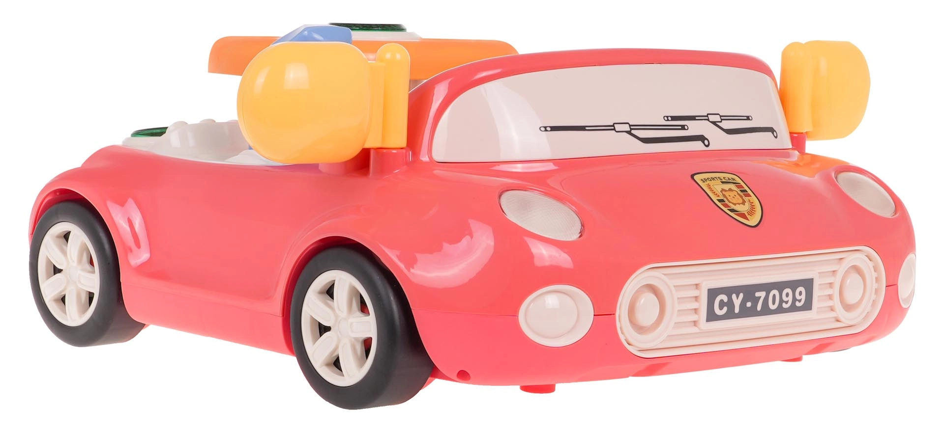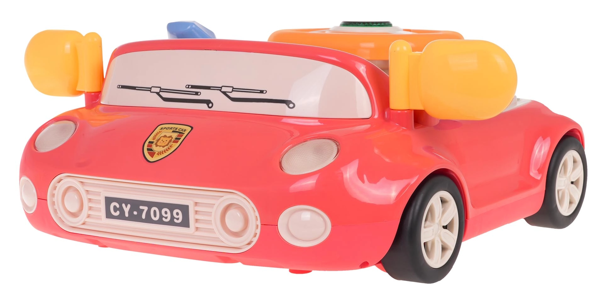 L’automobilina interattiva entusiasmerà i piccoli piloti con elementi realistici: fari anteriori luminosi, frecce lampeggianti, clacson retroilluminato e suoni del veicolo, incluse melodie. I bambini possono girare il volante, cambiare marcia e seguire la strada in movimento con l’auto sul display integrato.