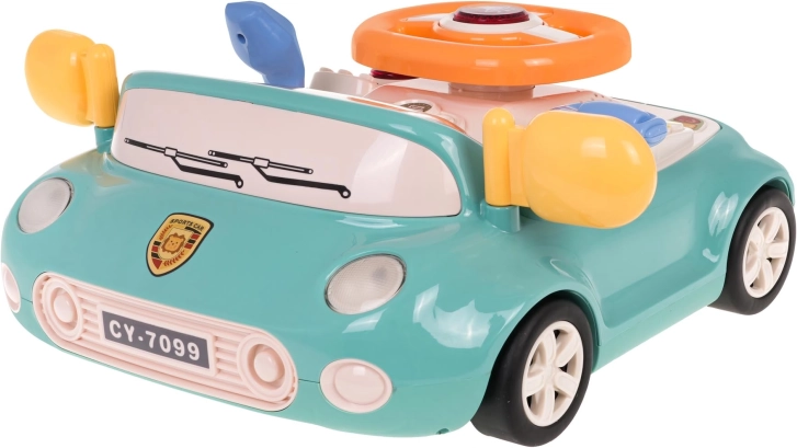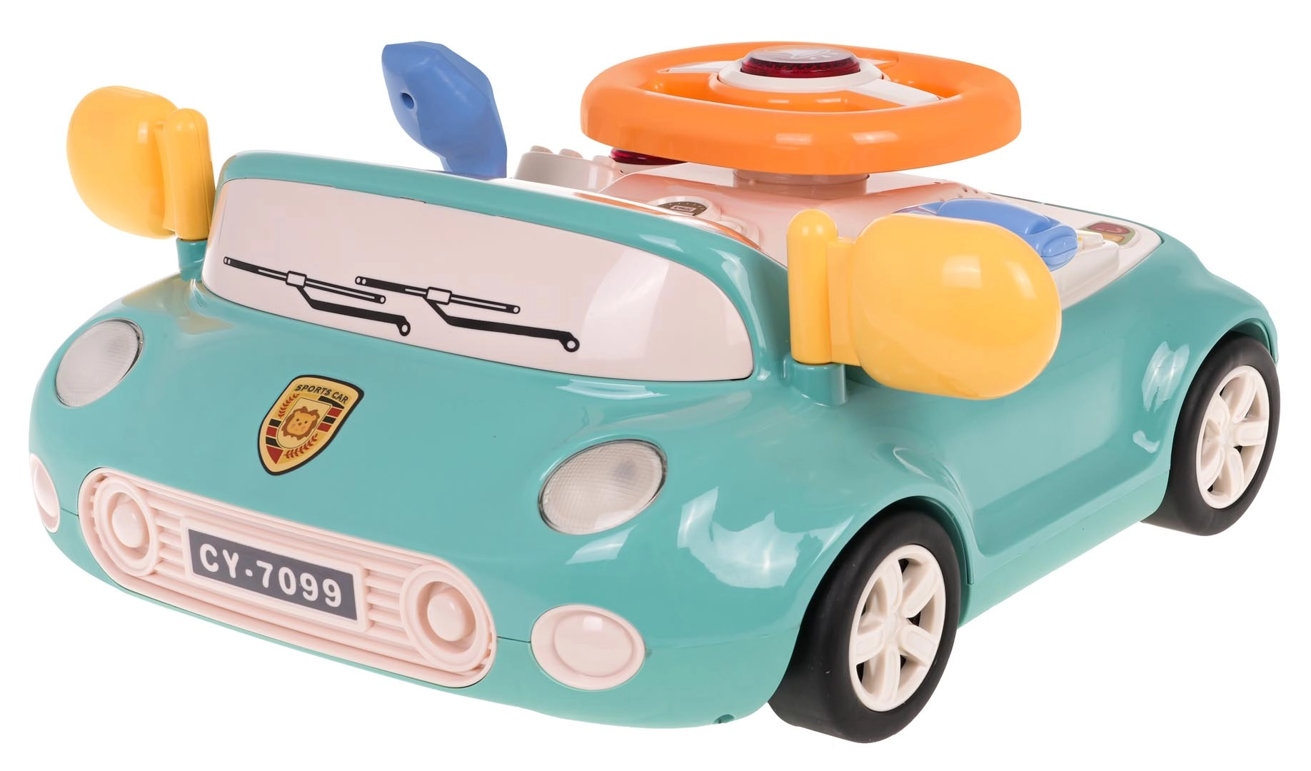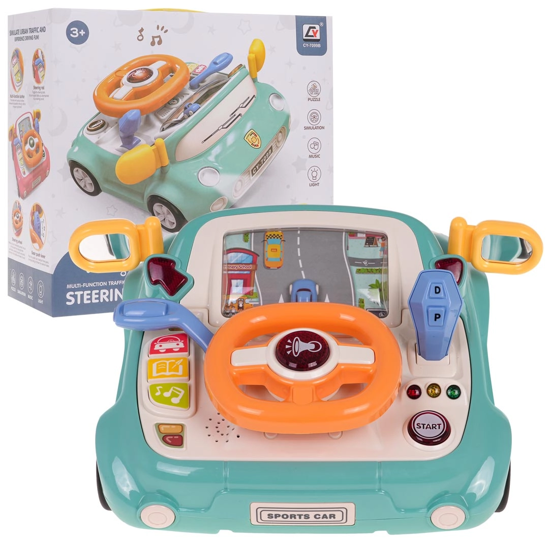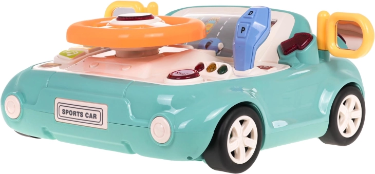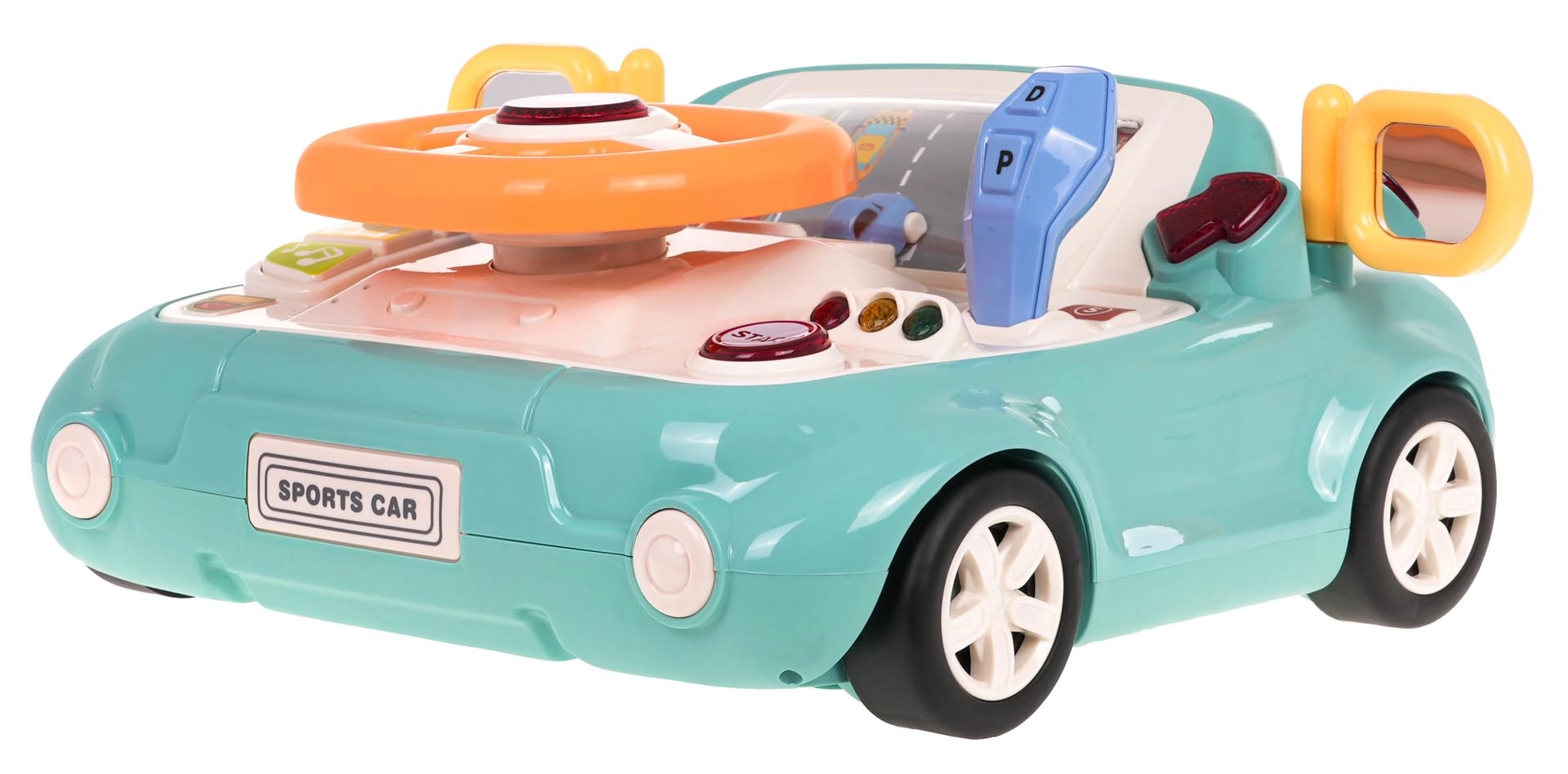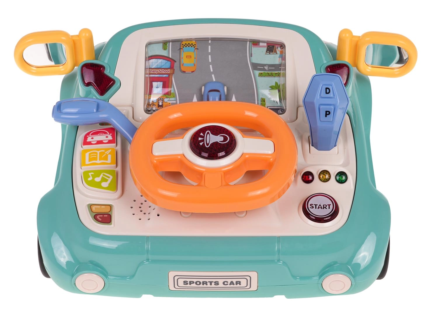 Volante girevole con clacson retroilluminato, leva del cambio e frecce funzionanti danno ai bambini la sensazione di una vera guida e li motivano a scoprire le regole della strada.