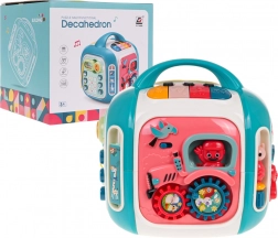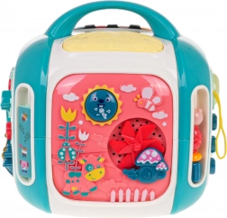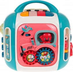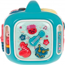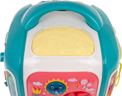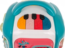 Il cubo interattivo è progettato per divertire e insegnare. I bambini scoprono colori, forme, nomi di animali e mezzi di trasporto, allenano le dita con elementi rotanti e scoprono varie melodie e suoni. Il pannello superiore con pianoforte offre 3 modalità e tasti sensibili per suonare facilmente.