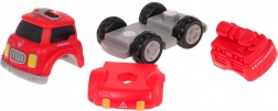 Camion dei pompieri interattivo con magneti per bambini dai 3 anni. Il veicolo è realizzato in plastica di altissima qualità e dispone di effetti sonori e luminosi. Premendo la parte superiore del veicolo sentirai canzoncine allegre, sirene dei pompieri o risate di bambini. Gli effetti sonori sono accompagnati da luci colorate sul tetto del veicolo. Il veicolo può essere smontato senza utilizzare attrezzi. I singoli elementi sono dotati di magneti, quindi possono essere facilmente e stabilmente fissati tra loro. Il giocattolo è alimentato da 3 batterie AG13 (incluse).