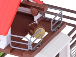 Incluso c'è una stazione veterinaria con dimensioni: 34 x 24 x 15 cm, realizzata in plastica resistente e dotata di porte e finestre funzionanti. I bambini possono simulare la cura degli animali e fornire cure mediche necessarie.