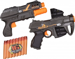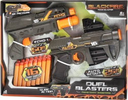 Goditi scontri adrenalinici con la coppia di pistole a dardi in foam BLACKFIRE. Il modello Auto Scout offre tiro rapido grazie al caricatore da 6 dardi e al facile armamento della canna prima di ogni colpo. Echo‑11 colpisce per la ricarica a pompa con inserimento del dardo direttamente nella canna e una gittata maggiore fino a 15,2 m.