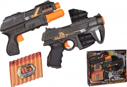 Set divertente di due blaster a dardi in foam per giochi d’azione in casa e all’aperto. Include la pistola Auto Scout con caricatore da 6 dardi e la pistola Echo‑11 con ricarica a pompa. Nella confezione 16 dardi in foam, gittata fino a 15,2 m e comando a grilletto semplice per un divertimento sicuro e rapido.