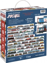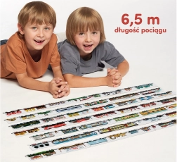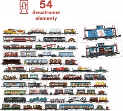 Il puzzle include 54 pezzi bifacciali e un poster educativo con curiosità nel campo della tecnologia e della storia dei trasporti. Bambini e adulti potranno immergersi nel mondo delle ferrovie e scoprire molto di più.