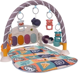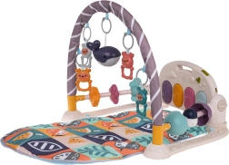 Il pianoforte con 4 tasti retroilluminati e pulsante melodie può essere inclinato in più posizioni, rimosso dal tappeto e, grazie alla maniglia, portato con sé. L’arco offre 4 orsetti sonagli sospesi e un delfino luminoso; i moduli laterali a perline tipo clessidra sviluppano la motricità fine. Il volume è comodamente regolabile.