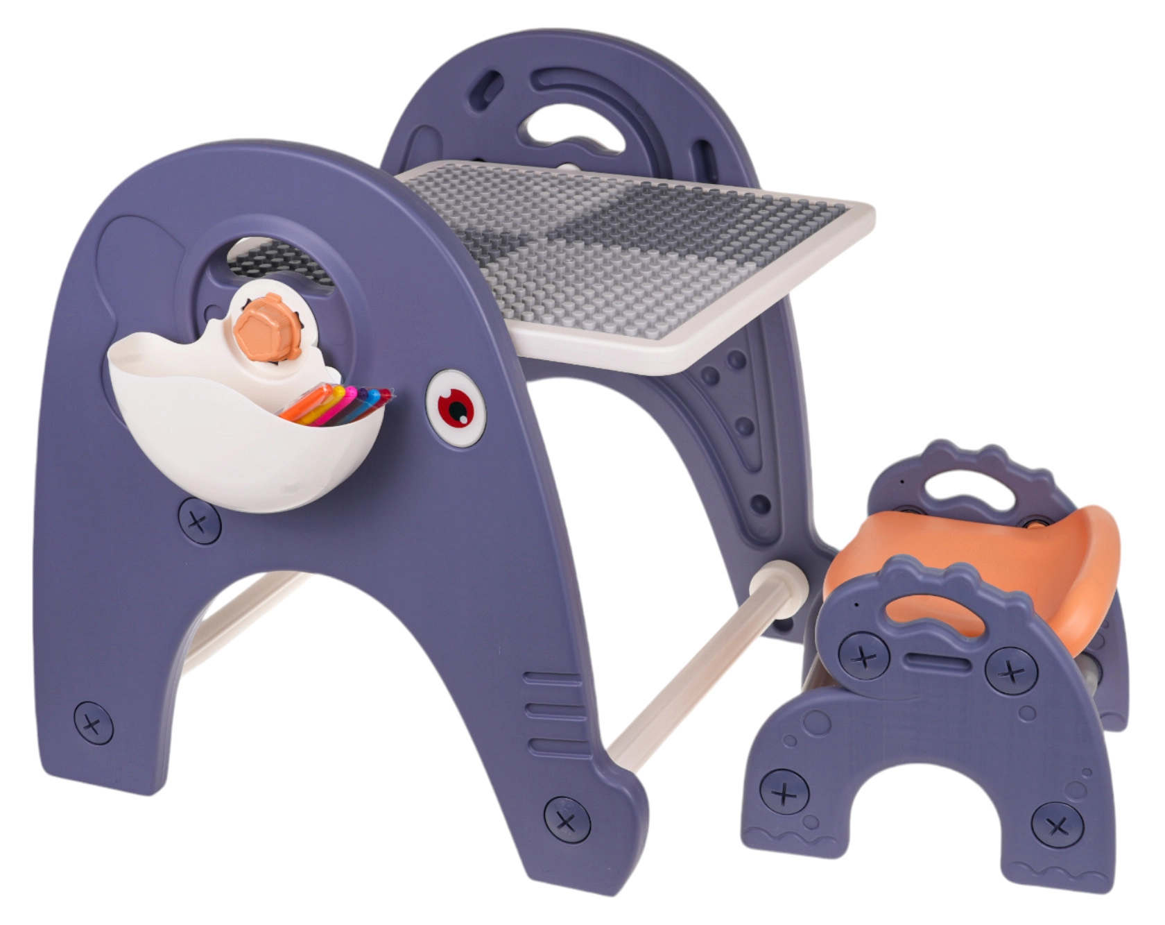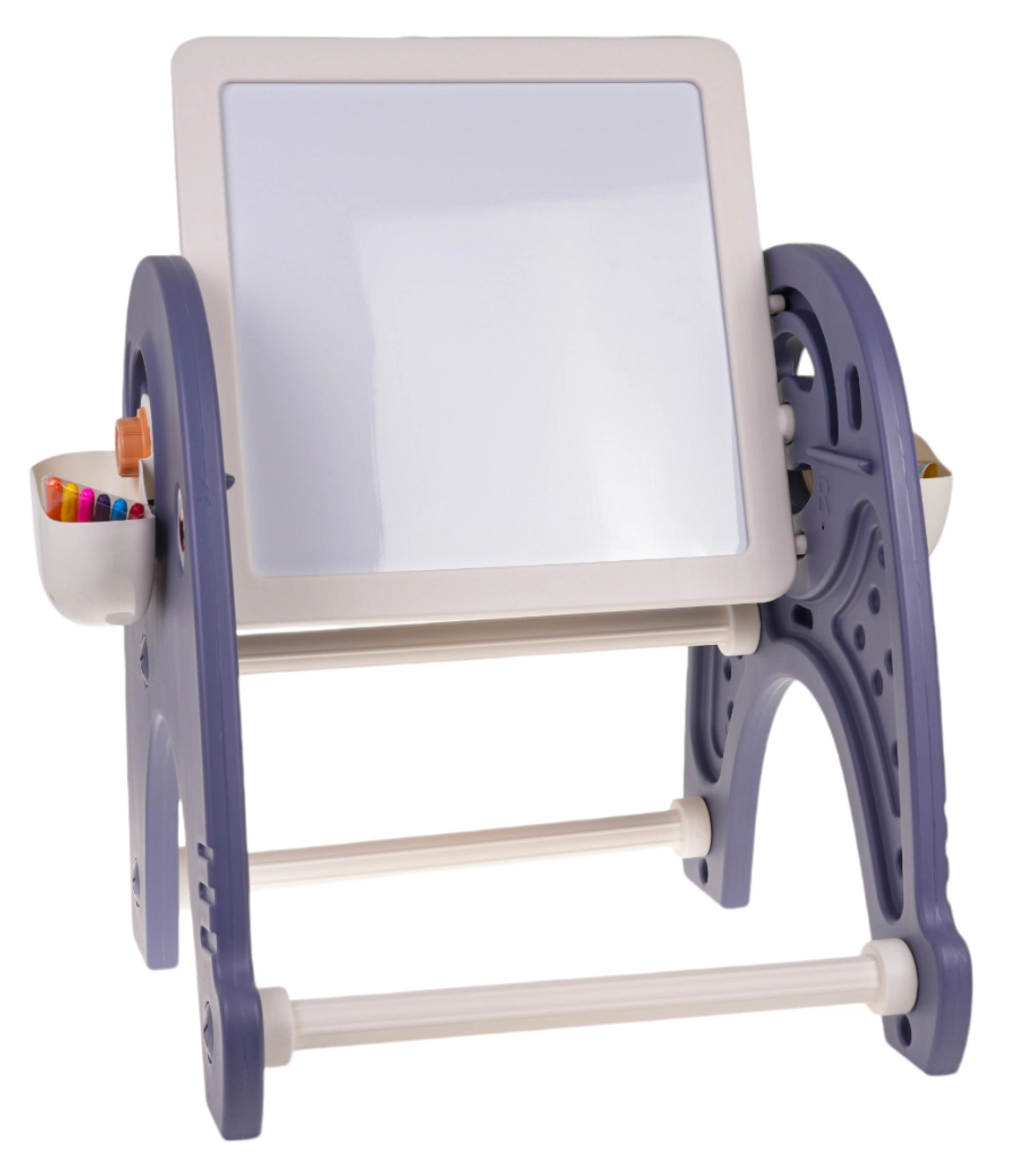 Set 4 in 1: lavagna, tavolo, base per costruzioni e sedia per bambini dai 3 anni in su. Il set è realizzato in plastica di altissima qualità, senza spigoli vivi ed è stabile. Sulle gambe in plastica è montata una lavagna che può essere inclinata a qualsiasi angolazione e ruotata. Da un lato c’è una superficie per disegnare e dall’altro una base per costruire con i mattoncini. La lavagna e la base possono essere usate in posizione verticale o orizzontale. In posizione orizzontale, il set può essere utilizzato come tavolino per disegnare, studiare o mangiare, oppure come base per i mattoncini. Il set include una spugna e 6 pennarelli. Ai lati del set sono presenti anche due cestini per accessori da disegno. Il set sviluppa l’immaginazione e le capacità cognitive dei bambini. .. Caratteristiche del set: . - indicato per bambini dai 3 anni, .- realizzato con materiali sicuri, senza spigoli vivi, .- molte possibilità di gioco: .* tavolino da disegno, .* tavolo per lo studio o il gioco, .* supporto per costruire con i mattoncini, .* lavagna per disegnare, .- sedia stabile, .- sviluppa l’immaginazione e le capacità cognitive dei bambini. . |