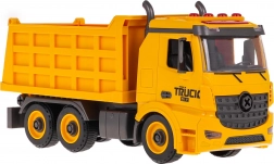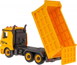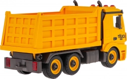 Funzioni pratiche includono il cassone sollevabile e abbassabile con sponda posteriore apribile e la possibilità di scollegare il rimorchio/cassone dal telaio. Sulla cabina trovi luci lampeggianti e pulsanti di controllo per i suoni di avviamento, retromarcia, clacson e allarme. Il giocattolo è pronto all’uso subito dopo l’apertura – le batterie sono incluse.