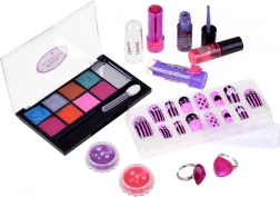 Il set include tutto per una trasformazione completa: ombretti in crema con applicatore, lucidalabbra e rossetti scintillanti, smalti per unghie, tip adesivi con motivi già pronti e deliziosi anellini a forma di cuore. Giocare con la cosmetica sviluppa la motricità fine, il senso del colore e sostiene l’autoespressione.