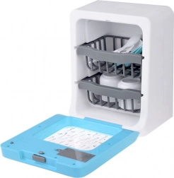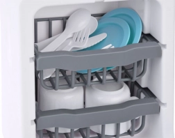 Questa lavastoviglie per bambini porta nel gioco elementi realistici: dal gorgoglio dell’acqua e il suono di risciacquo/sterilizzazione fino alla segnalazione di fine programma. Grazie al pannello touch i piccoli aiutanti possono scegliere facilmente modalità e tempo. Lo sportello apribile e i cestelli a due livelli permettono di inserire comodamente piattini, tazze e posate.