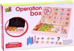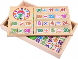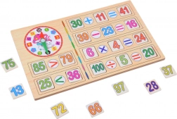 Scopri un modo giocoso per avvicinarti ai numeri con questo set educativo in legno in una pratica scatola. Include una lavagnetta bifacciale (lato con gesso e lato illustrato), tessere numeriche, simboli matematici, bastoncini da conteggio, gessetti colorati e una spugnetta. Ideale per le prime operazioni, lo sviluppo della motricità fine e l’apprendimento dei colori – tutto in modo divertente e intuitivo.