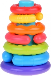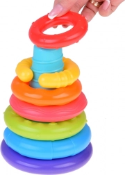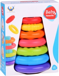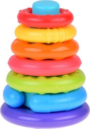 La colorata piramide sensoriale con sei anelli è ideale per bambini dai 6 mesi. Supporta lo sviluppo della motricità fine, la coordinazione mano–occhio e la percezione sensoriale grazie alle diverse texture e ai colori. Gli anelli in morbida plastica sono facili da afferrare e impilare, favorendo in modo divertente abilità e curiosità del bambino.