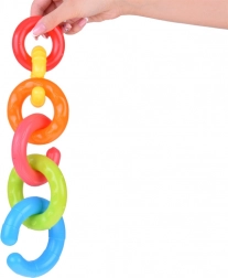 Gli anelli sono realizzati in plastica morbida, piacevole al tatto e sicura per le manine. Le diverse texture offrono stimoli sensoriali e incoraggiano l’esplorazione.