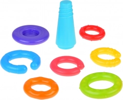 L’impilamento degli anelli allena la presa, la precisione dei movimenti e la coordinazione mano–occhio, basi di un sano sviluppo motorio.