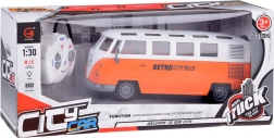 Elegante autobus retrò radiocomandato che offre ai bambini tanto divertimento e sviluppa le loro abilità. Il modello RETRO CITY BUS consente marcia avanti/indietro, sterzata e luci anteriori e posteriori realistiche. Grazie alla robusta struttura in plastica e agli pneumatici in gomma è ideale per una guida fluida in casa.