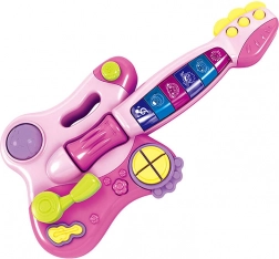 La chitarra è dotata di 9 pulsanti che attivano varie melodie e suoni e offre 3 modalità musicali - pop, rock e blues. I pulsanti luminosi, il cilindro mobile e la leva rosa per cambiare canzoni offrono un divertimento dinamico, mentre la pallina di espansione funge da sonaglio.