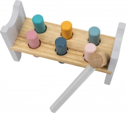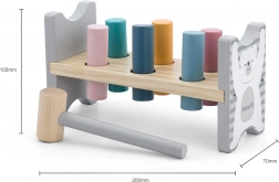Un batti-batti colorato con martelletto per lo sviluppo della motricità. I bambini possono battere i pioli e poi girare il giocattolo per continuare a giocare.