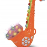 Sassofono di plastica allegro con tasti colorati per tutti i piccoli musicisti. Giocattolo ideale per sviluppare l'udito musicale e il senso musicale dei vostri bambini.