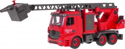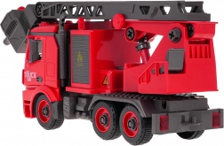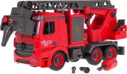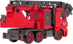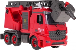 Autopompa dei vigili del fuoco interattiva avvitabile con funzione acqua per bambini dai 3 anni. Il set include un cacciavite con punte intercambiabili per smontare il veicolo. Il camion dei pompieri ha la trazione anteriore. Sul tetto ci sono due luci lampeggianti e pulsanti funzionali. I pulsanti attivano i suoni di allarme, avviamento del veicolo, retromarcia e sirena. Il braccio del camion dei pompieri può essere sollevato, abbassato ed esteso manualmente. Può anche ruotare di 360 gradi. Dopo aver riempito il serbatoio d’acqua e premuto il pulsante sull’estremità della manichetta, l’acqua inizia a spruzzare. Il giocattolo è alimentato da 3 batterie AG13 (incluse nella confezione).