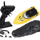 La barca RC 2 in 1 offre il doppio del divertimento: puoi goderti la pura velocità della barca a motore gialla, oppure montare la copertura inclusa e trasformarla in una credibile testa di coccodrillo, che sull’acqua sembra viva. Controlli facili, buon raggio e risposte rapide consentono una guida giocosa e manovre precise.