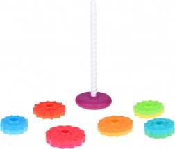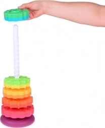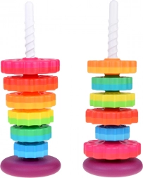 Questa torre a spirale colorata cattura l’attenzione con colori vivaci e il fluido scivolamento degli anelli lungo l’asta a spirale. Durante il gioco, i bambini sviluppano naturalmente la presa, la precisione dei movimenti e imparano a distinguere le dimensioni. Grazie alla plastica resistente e alla base stabile, il gioco è sicuro e intuitivo.