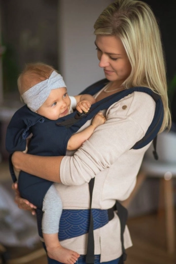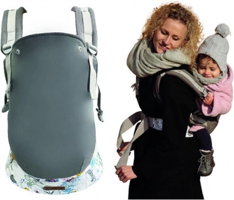 Porta frontalmente da circa 3 mesi e sulla schiena indicativamente da 6 mesi. Cappuccio removibile, tasca e elastici sugli spallacci facilitano la quotidianità.